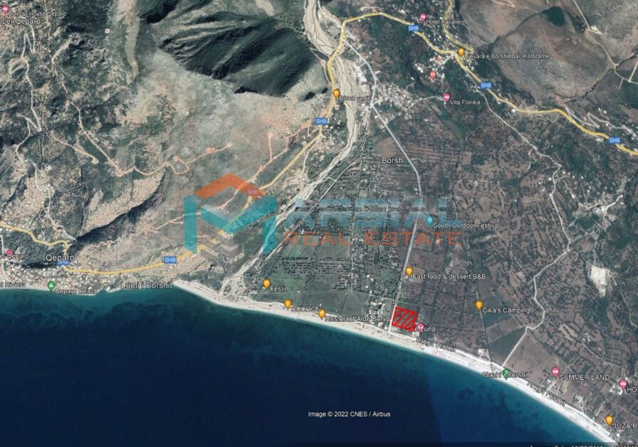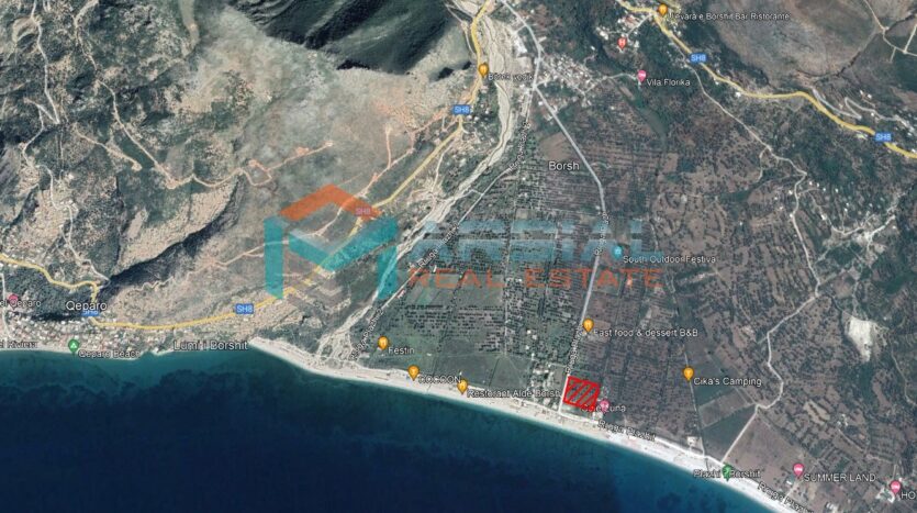 Shitet 8000m2 truall ne Plazhin e Borshit. Parcela ndodhet vetem 80 metra larg detit. Toka ka forme kuadrat. Eshte fushe dhe e pershtatshme per Hotel, vila etj. Ka certifikate pronesie.